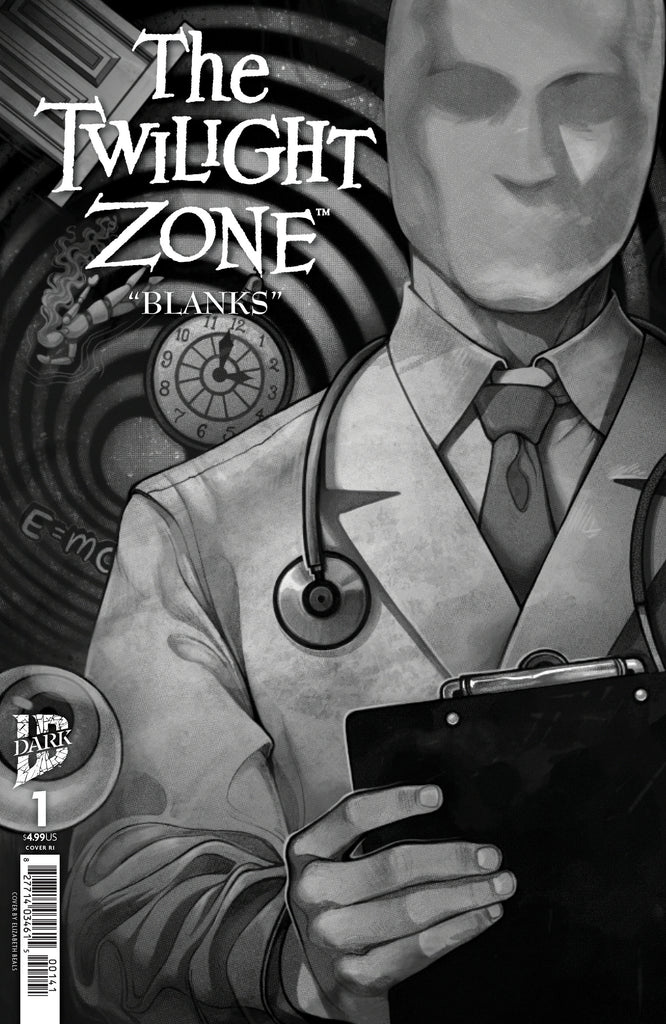 Return to the Twilight Zone in this all-new anthology series featuring stories by some of the best creators in comics today! Each issue is a new tale in the vein of the iconic original television series that’s captivated audiences for over 60 years. And like the show, these stories will be revealed in terrifying black and white!THIS ISSUE: Writer Dan Watters (Batman: Dark Patterns, Home Sick Pilots) and artist Morgan Beam (Swamp Thing: Twin Branches) present “Blank.” A terrified citizen regales a detective with a story about people suddenly frozen like statues. A once-bustling metropolis becomes quieter by the minute as people are replaced by featureless versions of themselves. Where one would have found hopes, laughter, tears, and struggles, one can now only find BLANKS…here in The Twilight Zone.