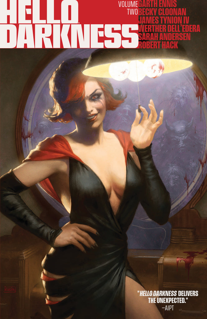 Descend deeper into the darkness… but WATCH OUT! It’s even more of the most frightening stories by today’s top horror storytellers!The hot sun beats down on the desert, but when night falls, what lies waiting in the dust for an unsuspecting cowpoke?In a cabin after the end of the world, is the promise of company a comfort or a curse?When Something is Killing the Children, Erica Slaughter must piece together the events of many a story to tell what is real.From the past to the future to the uncomfortably now, Hello Darkness taps into our fears both primal and present!Featuring "The War" parts 5-7 by Garth Ennis (Preacher, The Boys) and Becky Cloonan (Wonder Woman, Somna); "SIKTC: A Monster Hunter Walks into a Bar" parts 3 and 4 from the Eisner Award-winning team of James Tynion IV and Werther Dell’Edera (Something is Killing the Children); "The Search" by Sarah Andersen (Fangs), "The Christmas Log" by Steve Orlando and Adam Gorham, and many more!Collects Hello Darkness #5-8.