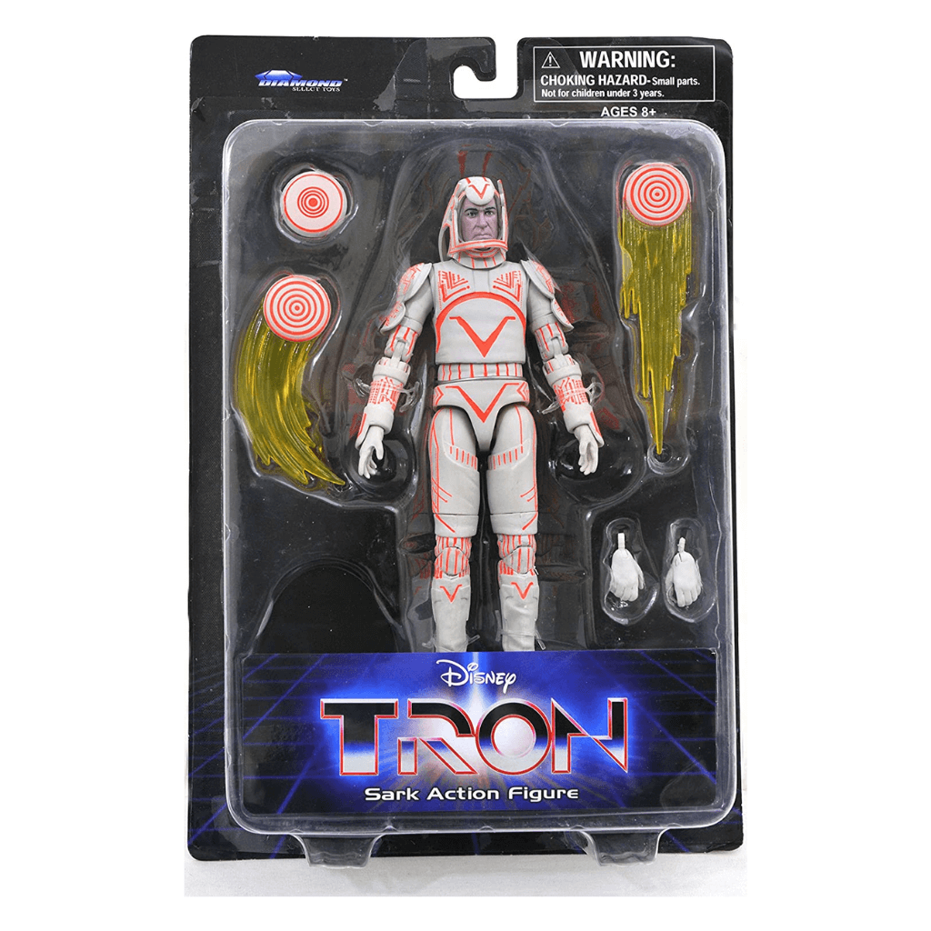A Diamond Select Toys release! Halt, user! For the first time ever, The classic sci-fi movie Tron gets movie-accurate action figures! Each 7-inch scale action figure is based on the look of a character from the 1982 film – Tron, Sark and infiltrator Flynn in his red infiltration Disguise. Each features approximately 16 points of articulation and interchangeable disc accessories and effects, as well as a piece of a buildable recognized vehicle! Packaged in the display-ready select action figure packaging, with side-panel artwork for shelf reference. Designed by Eamon o’donoghue, sculpted by gentle giant Studios.