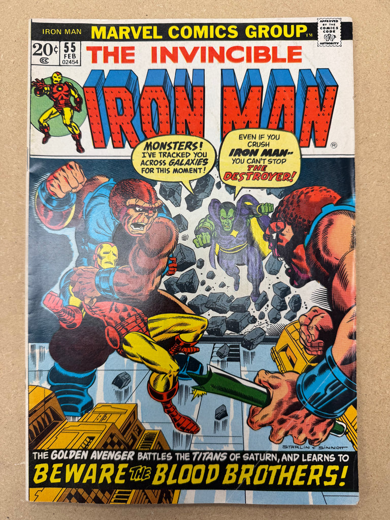 The First Appearance of Thanos, the Mad Titan who would possess the Infinity Gauntlet! Iron Man confronts the dual threat of the Blood Brothers! Guest-starring Drax the Destroyer!
